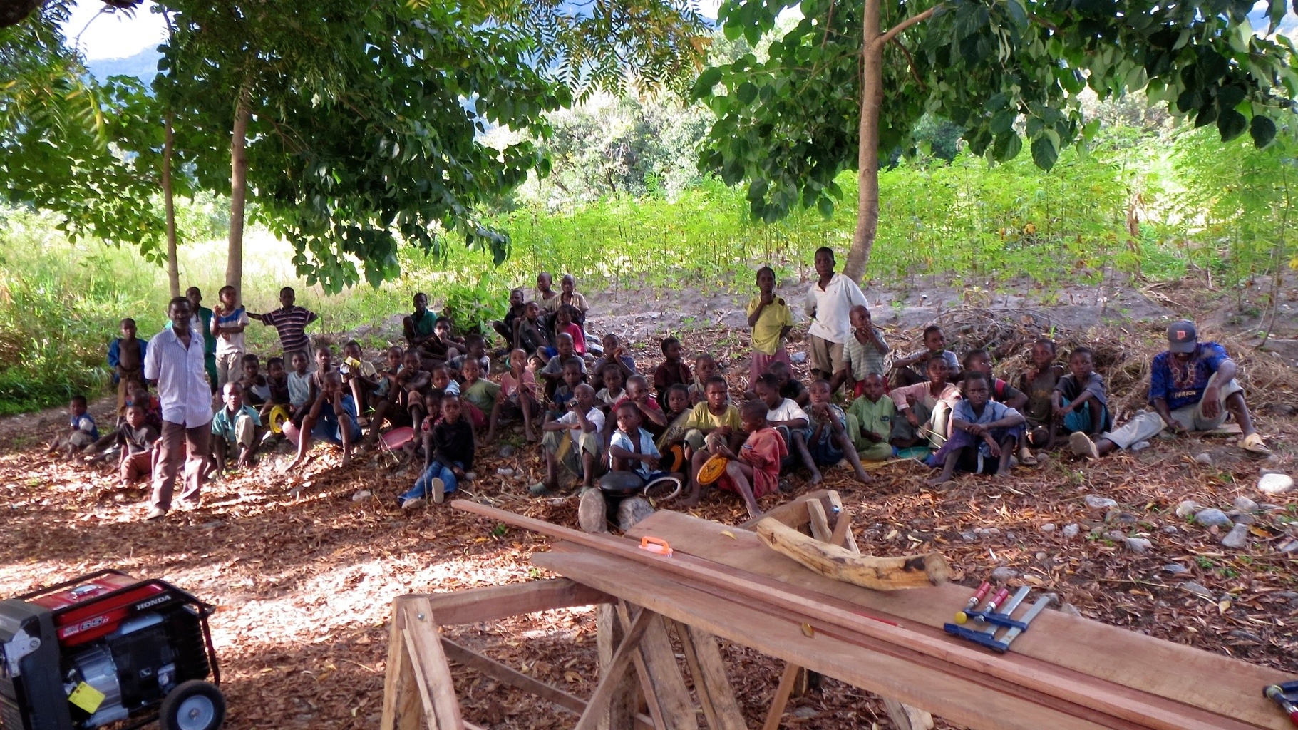 In Dar habe ich gestern den Bootsmotor abgeholt, eine ganze Menge Material und ein 6500 Watt Aggregat von Yamaha. Das haben wir im Shop probe laufen lassen und zwei grosse Sägen gleichzeitig ran geklemmt.