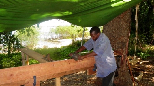 Es geht ganz gut voran mit dem Boot. Die ganze länge des Bodens ist sichtbar und sechs von neun Bodenwrangen sind verschraubt. Die teile sind aus einer Art Akazie geschlagen und echt schwer! Man hat etwas Sorge, dass das Boot sehr schwer wird.