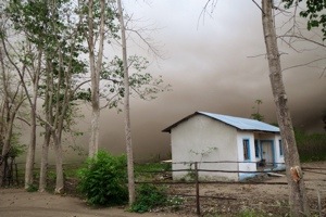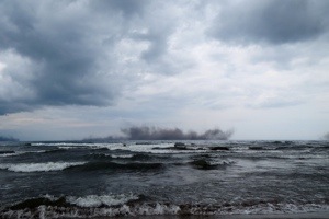 Aus dem See sind Milliarden Eintagsfliegen aufgestiegen und kommen als schwarze Wolke heran. Nach dem Glauben der Einheimischen stammen die aus dem Maul eines grossen Fisches.