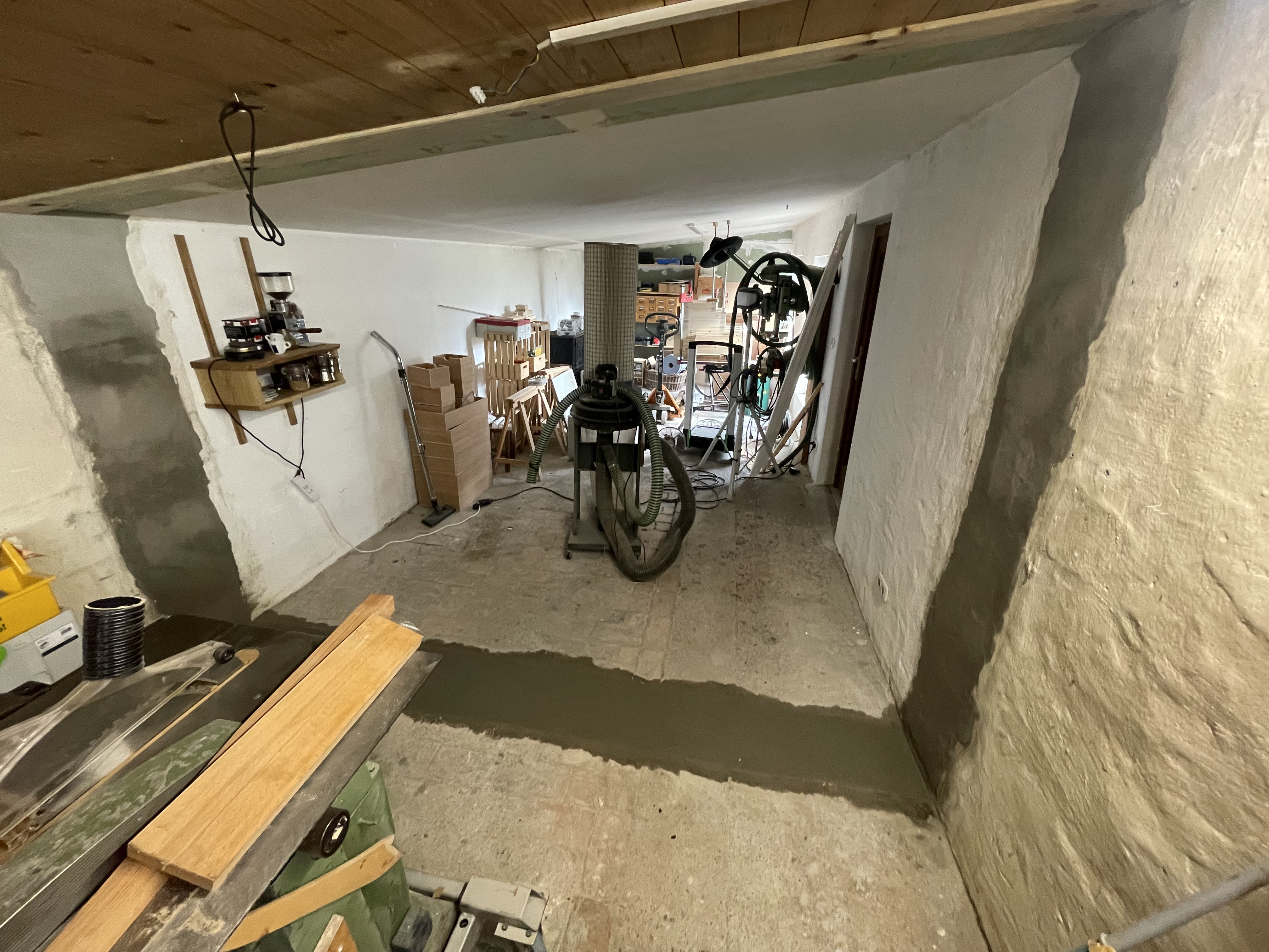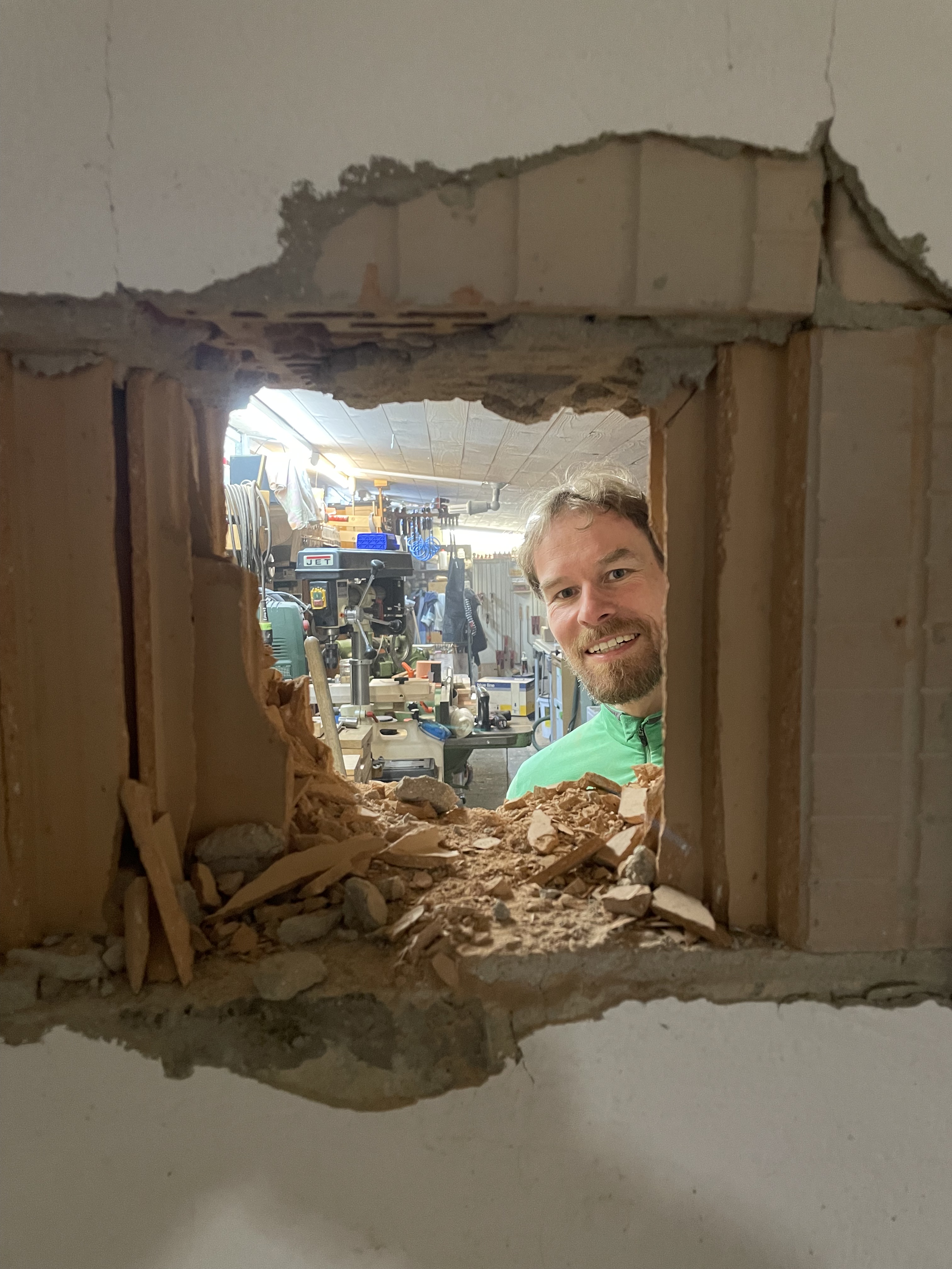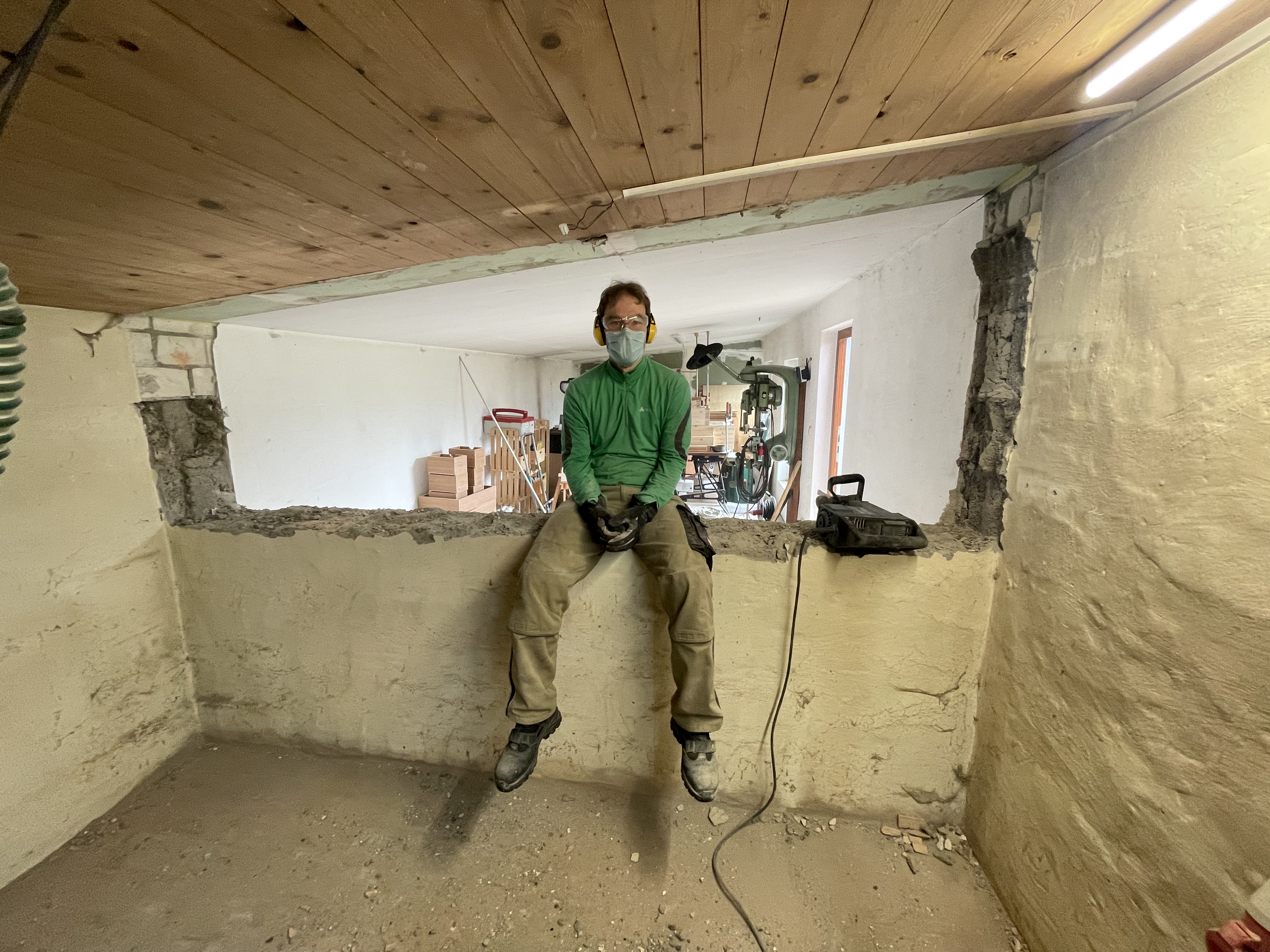 In Ackermannshof ist der Werkstattausbau voran gekommen, die Mauer habe ich mit Johannes eingerissen.