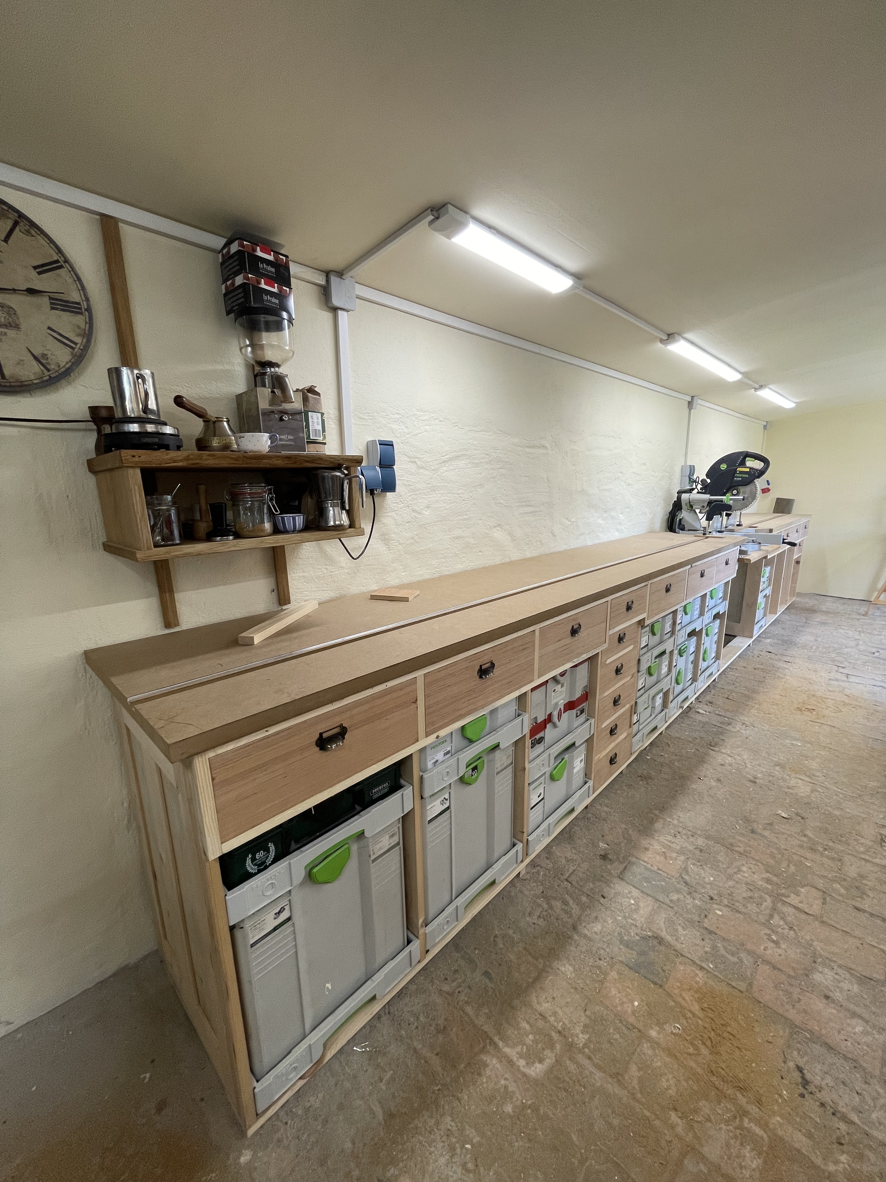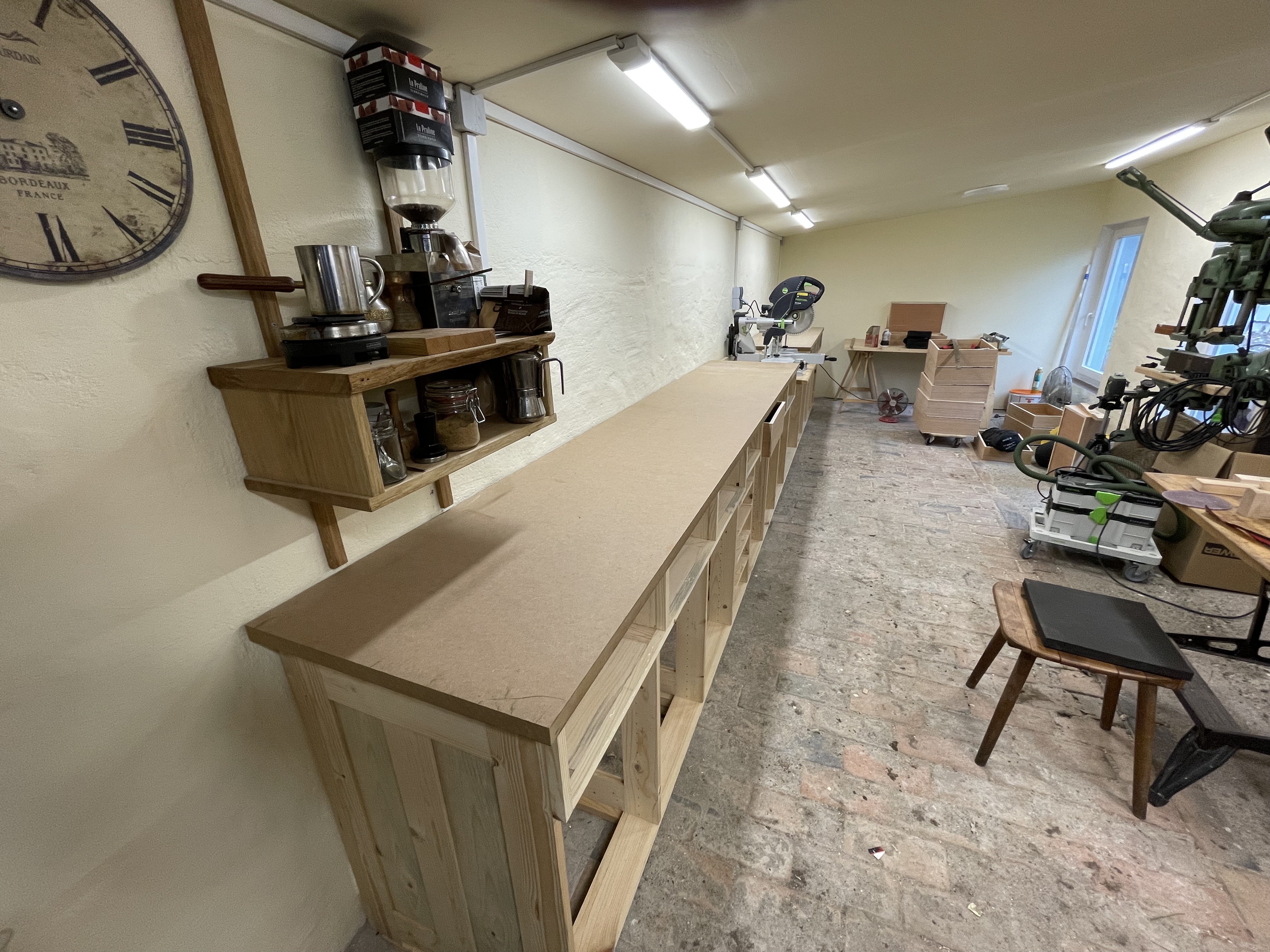 2. Hallo Rainer, herzlichen Glückwunsch zur gelungenen Erweiterung Deiner Werk- und Wirkstätte, sehr fein! Das Kaffeeregal ist schön und wichtig! 🙂 Weiterhin viele schöne Stunden beim Arbeiten in neuem größerem Umfeld.