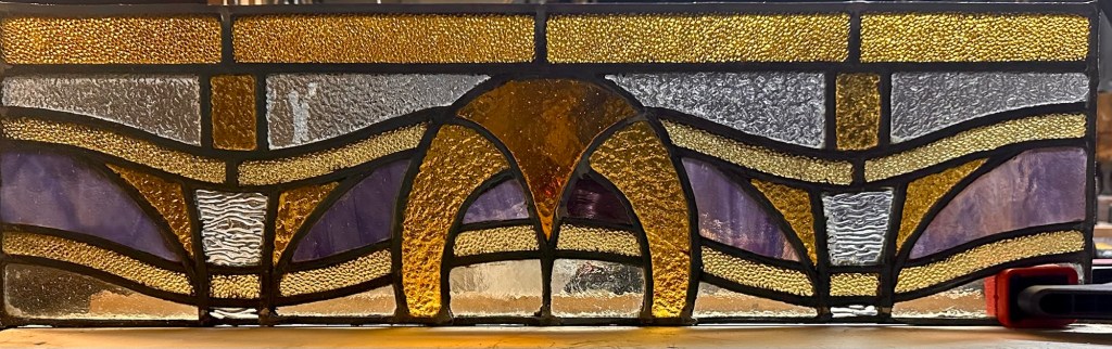 Restaurierung von Bleiverglasungen ist doch wieder ein ganz eigenes Gewerk und ich muss neu lernen. Löten mit Bleilot habe ich inzwischen einigermaßen drauf. Die größte Herausforderung ist das Schneiden von strukturiertem Glas. Zur Illustration auch hiervon ein paar Bilder. Ich werde dazu vielleicht einen eigenen Beitrag erstellen.